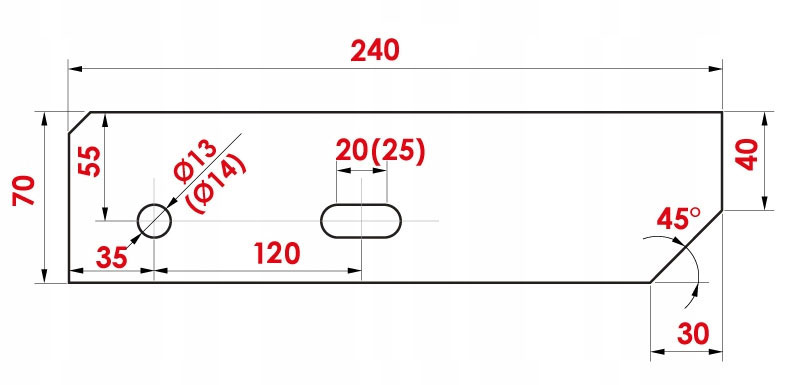 - Размер продолговатого монтажного отверстия (длина х ширина): 20x13 мм