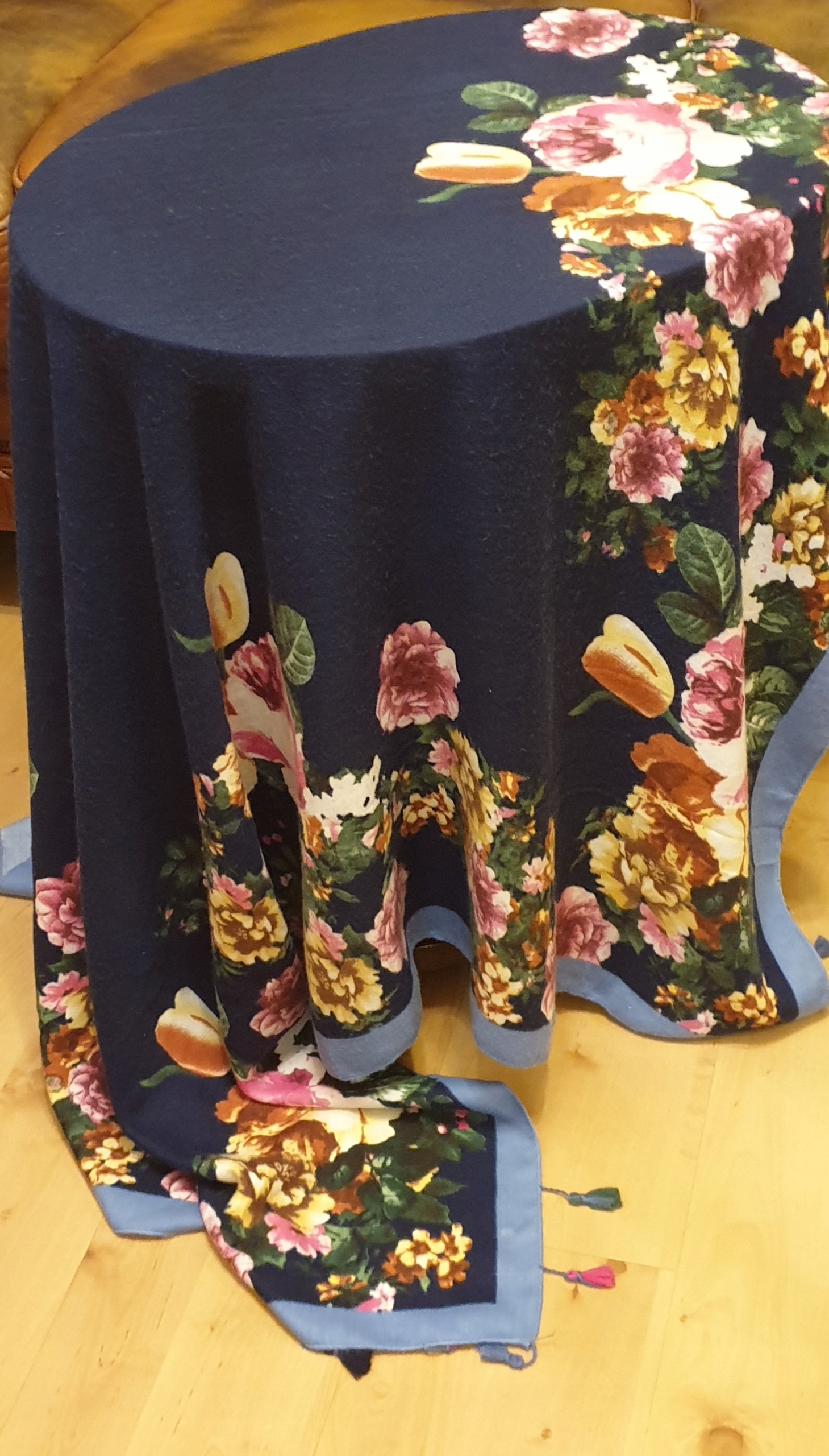 Скатерть/ШАРФ С БАХАРЬЮ ЧУДЕСНО КРАСИВЫЙ ЦВЕТОЧНЫЙ УЗОР И ЦВЕТ, КАК НОВОЕ СОСТОЯНИЕ ПО КРАЯМ МИКРО ДЕФЕКТ НЕ ВИДЕН ЧТО ВХОДИЛО В ЦЕНУ, РЕКОМЕНДУЮ МОЖНО ИСПОЛЬЗОВАТЬ МНОЖЕСТВО СПОСОБОВ ДЛЯ УКРАШЕНИЯ СТОЛА ИЛИ КАК ШАРФ . СОСТАВ 30% ЛАНА 70% ВИСКОЗА