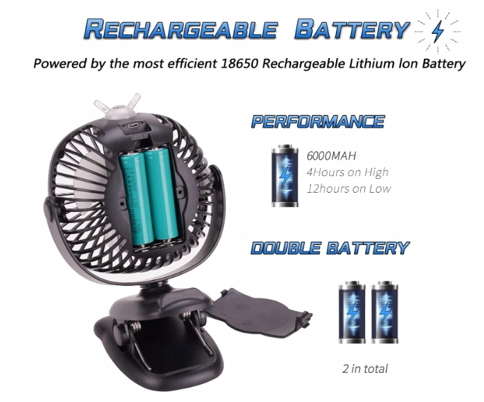 Wentylator z klipsem do wózka Venforze 6000 mAh Wentylator USB