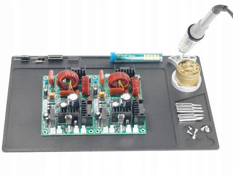 Большая ровная поверхность и высокая термостойкость позволяют паять платы и экраны, размещая их прямо на коврике.