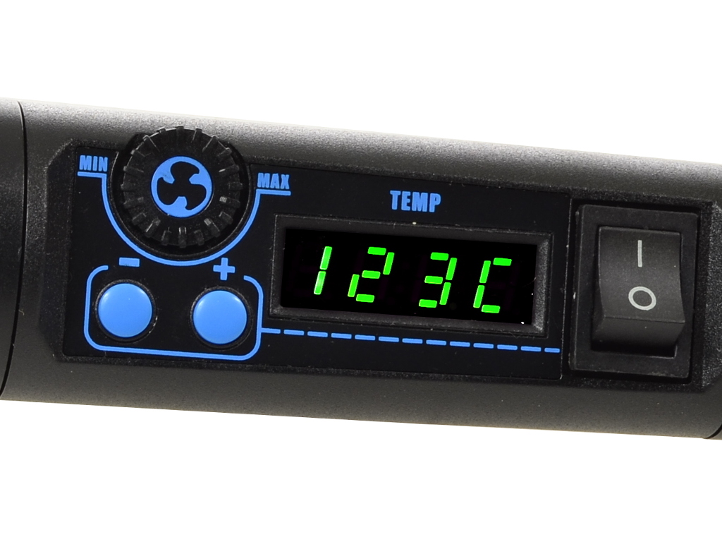 - Плавной регулировкой воздушного потока с цифровым управлением в диапазоне от 01 до 99.