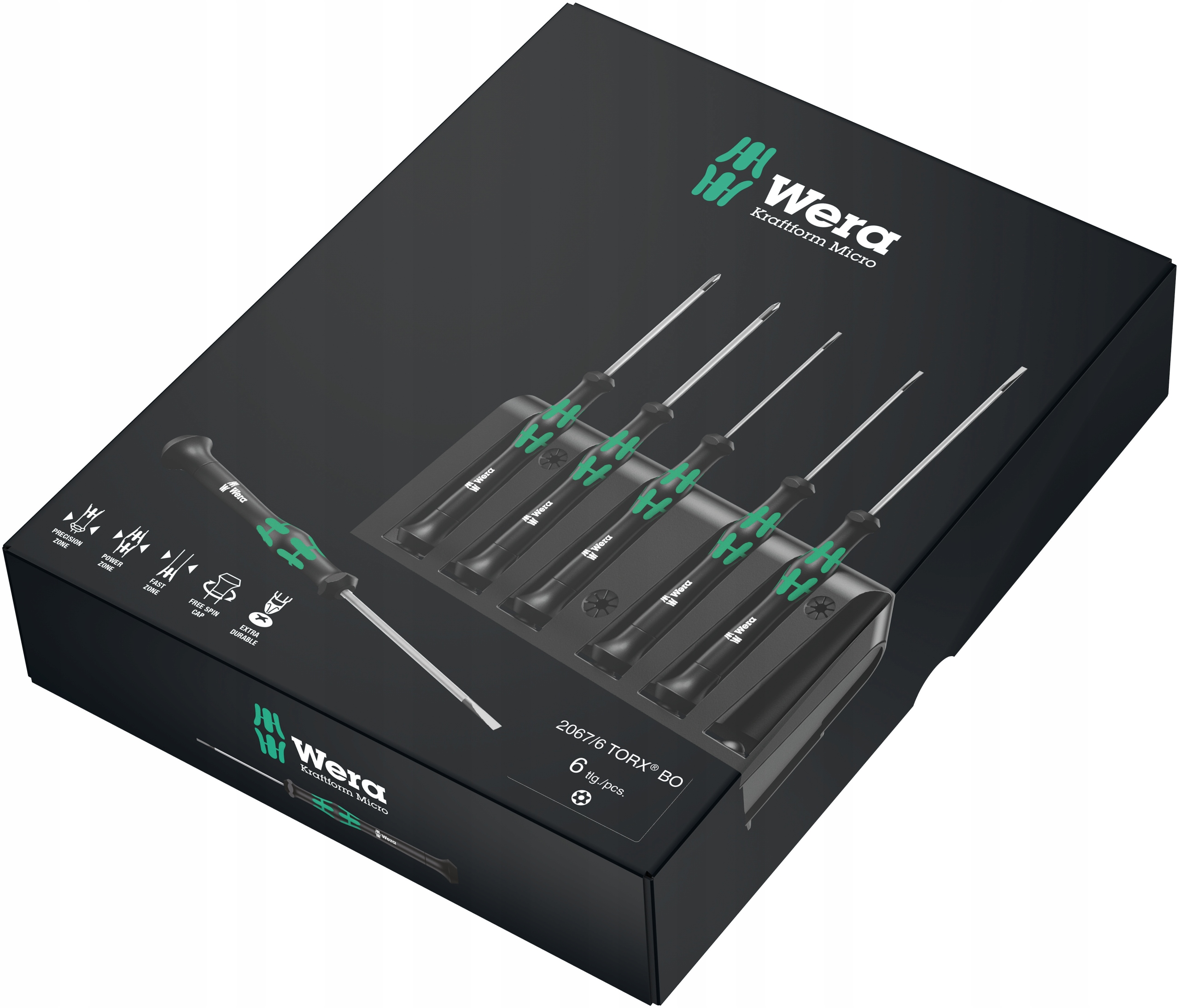 Набор высококачественных микроотвёрток для работы в точной механике. Для винтов TORX® с системой безопасности: головка для винтов TORX® BO имеет предохранительный штифт, который предотвращает откручивание винта посторонними лицами с помощью стандартных инструментов TORX®. Только специальные инструменты TORX® BO имеют отверстие, в котором спрятан предохранительный штифт. Возможность опереться рукой на вращающийся колпачок и зона поворота, расположенная непосредственно под колпачком, позволяют быстро вращать отвертку пальцами. Это полностью исключает трудоемкое скручивание. Зона передачи усилия, оснащенная вставками из мягкой резины, обеспечивает передачу высоких крутящих моментов. Прецизионная зона обеспечивает контроль угла поворота инструмента во время точных работ. Наконечник Black Point гарантирует точную посадку в гнездо винта и повышенную устойчивость к коррозии.
