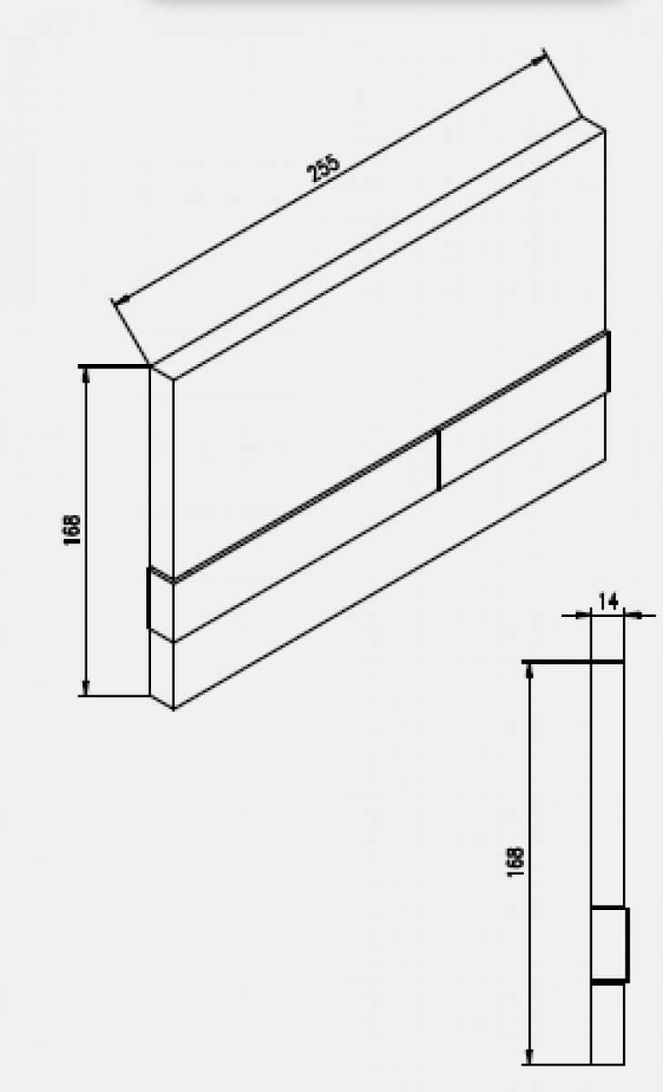 - размеры: 255 мм ширина х 168 мм высота х 14 мм толщина