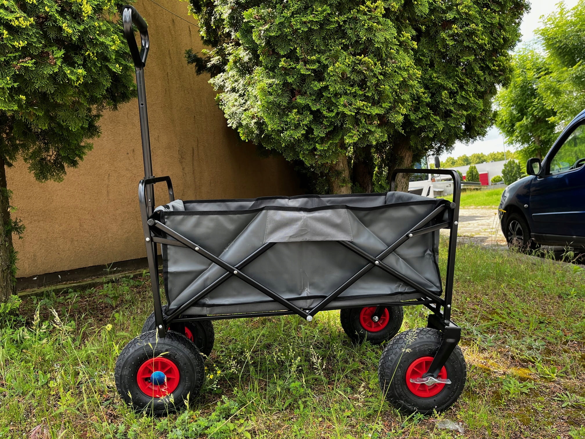 - Dimensions of the spreading truck with a handle 96 x 68.5 x 118 cm