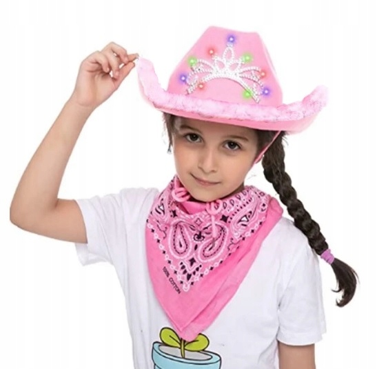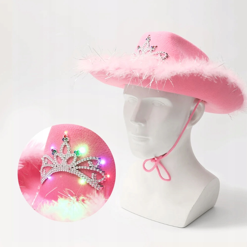 КОВБОЙСКАЯ ШЛЯПА РОЗОВАЯ НАРОДКА НАряд СВЕТОДИОДНАЯ КОРОНА С ОСВЕЩЕНИЕМ ДЛЯ ДЕТСКОГО КАРНАВАЛЬНОГО БАЛА