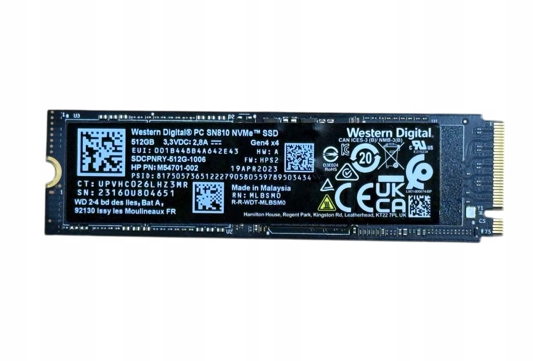 Твердотельный накопитель WESTERN DIGITAL SN810 512 ГБ 4x4GEN.M.2 2280 NVME