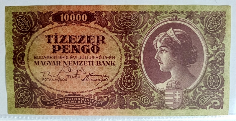 WĘGRY - 10.000 pengo 1945, P-119, st. 1/-1, bardzo ładny !