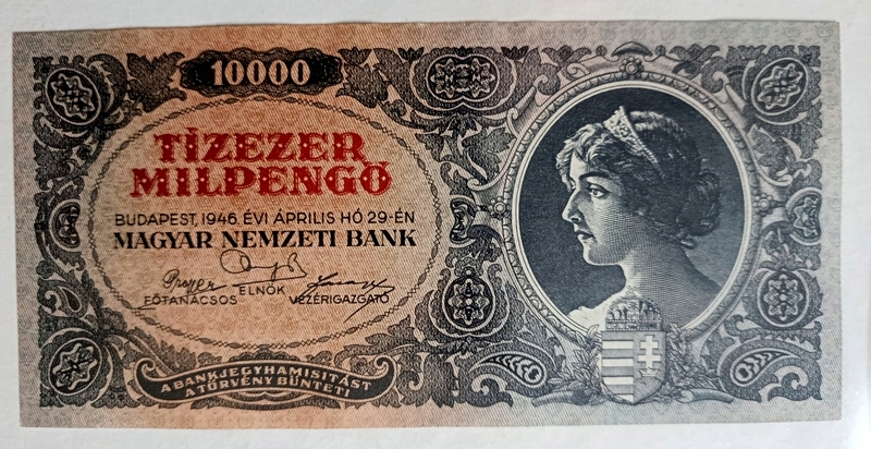 WĘGRY - 10.000 pengo 1946, P-126, st. 2, bardzo ładny !