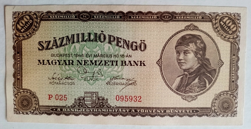 WĘGRY - 100.000.000 pengo 1946, P-124, st. +2, bardzo ładny !