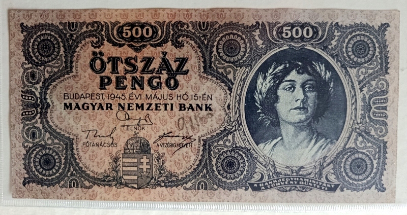 WĘGRY - 500 pengo 1945, P-117, st. 2/-2, ciekawy !