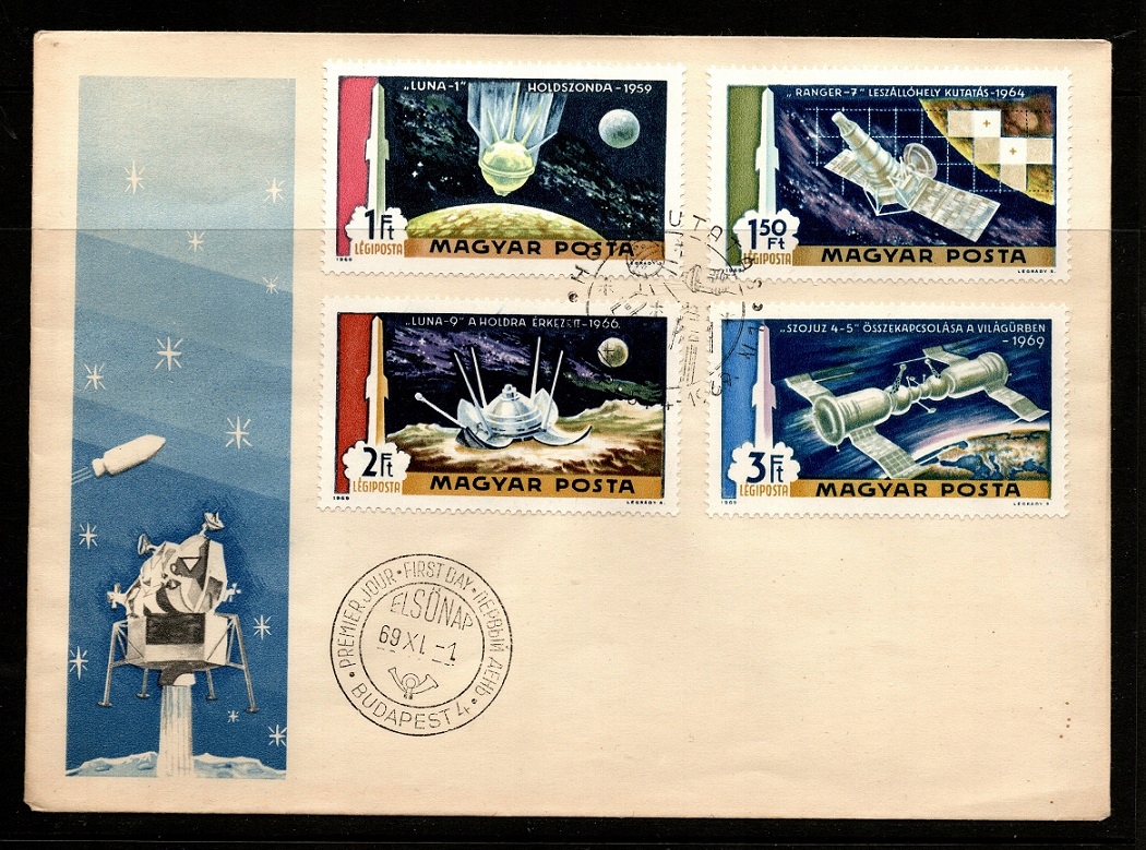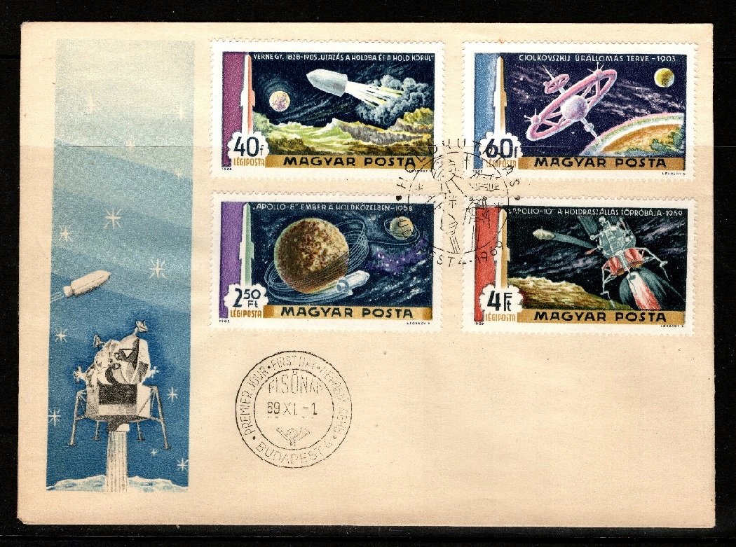 Węgry 3 koperty 1969 r. ( Kosmos - Apollo 11 )