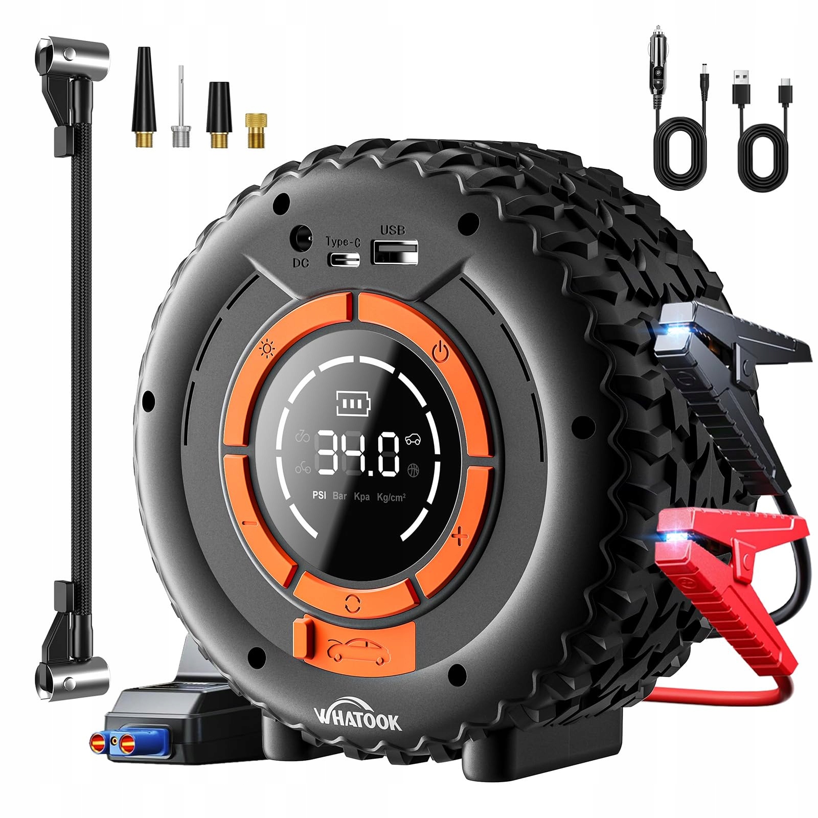 WHATOOK Powerbank с компрессором 3500A 150PSI, бензиновый дизельный двигатель 12 В