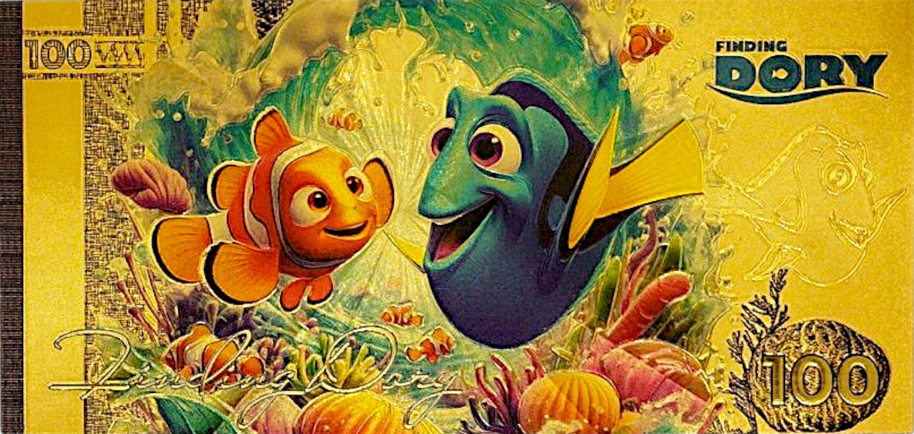 Перенос в волшебный подводный мир с уникальной позолоченной коллекционной банкнотой с мотивом сказки «В поисках Дори».