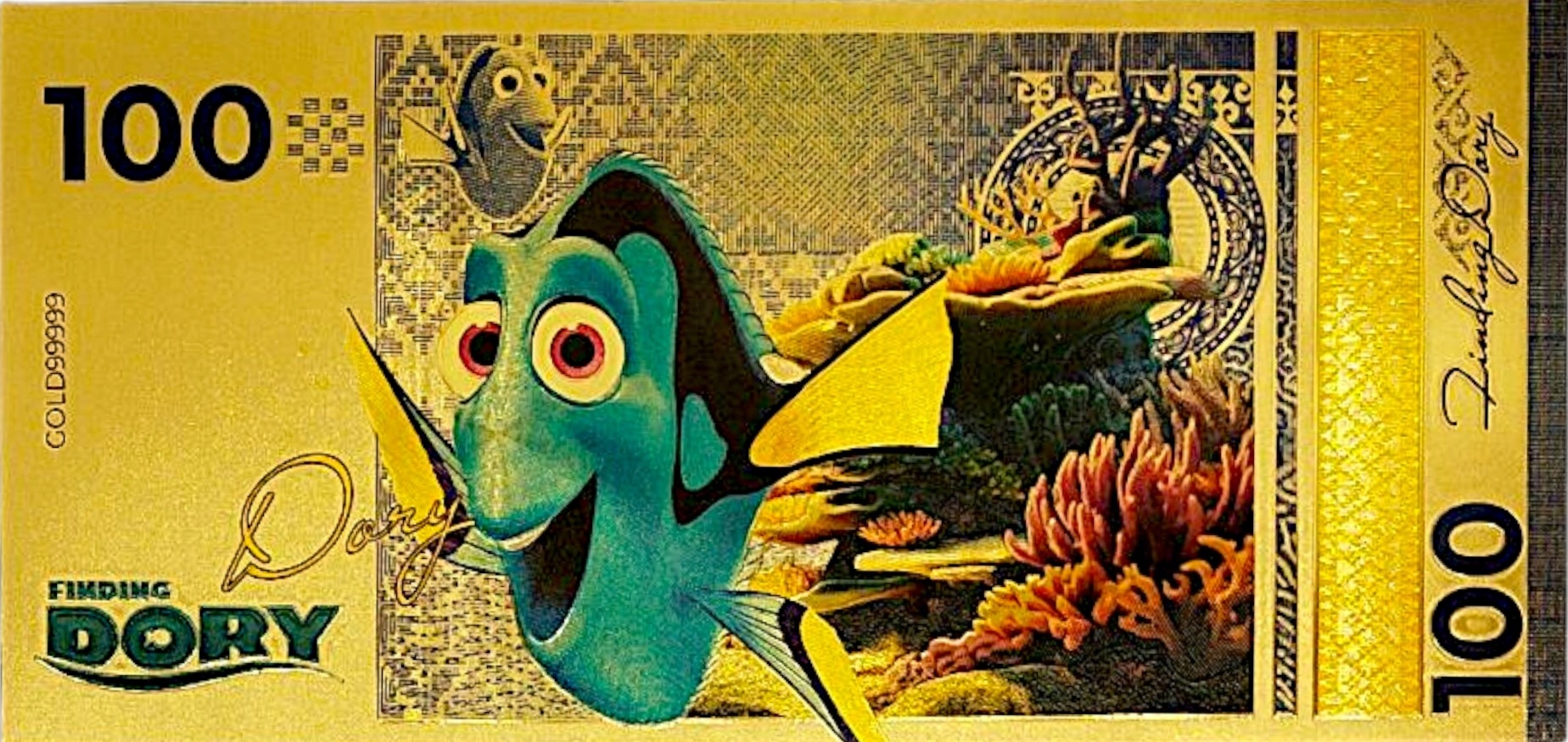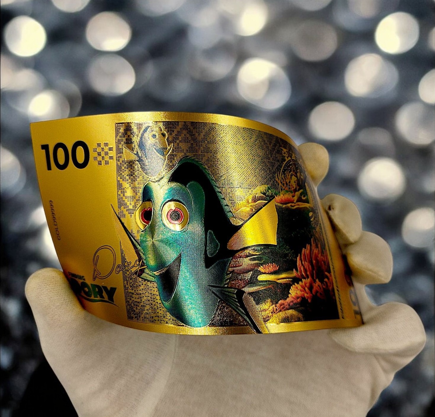 ГДЕ ДОРИ Коллекционная банкнота Позолоченный ПВХ Уникальный гаджет Дори