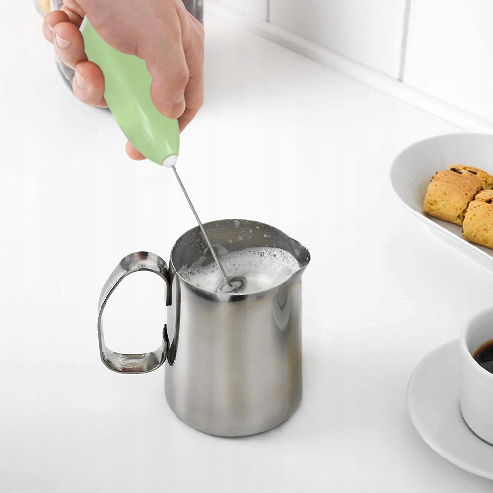 Mini -Powered Device 2 батареи , с Compacter из нержавеющей стали . Идеально подходит для теплого и холодного молока, а также для заправки для салатов. Поможет вам подготовить cappuccino , latte macchiato , горячий шоколад .