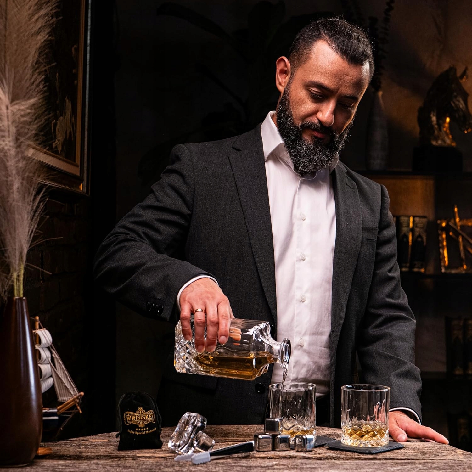 WHISISKEY ZESTAW KARAFKA SZKLANKI DO WHISKY KAMIENIE AKCESORIA PREZENT
