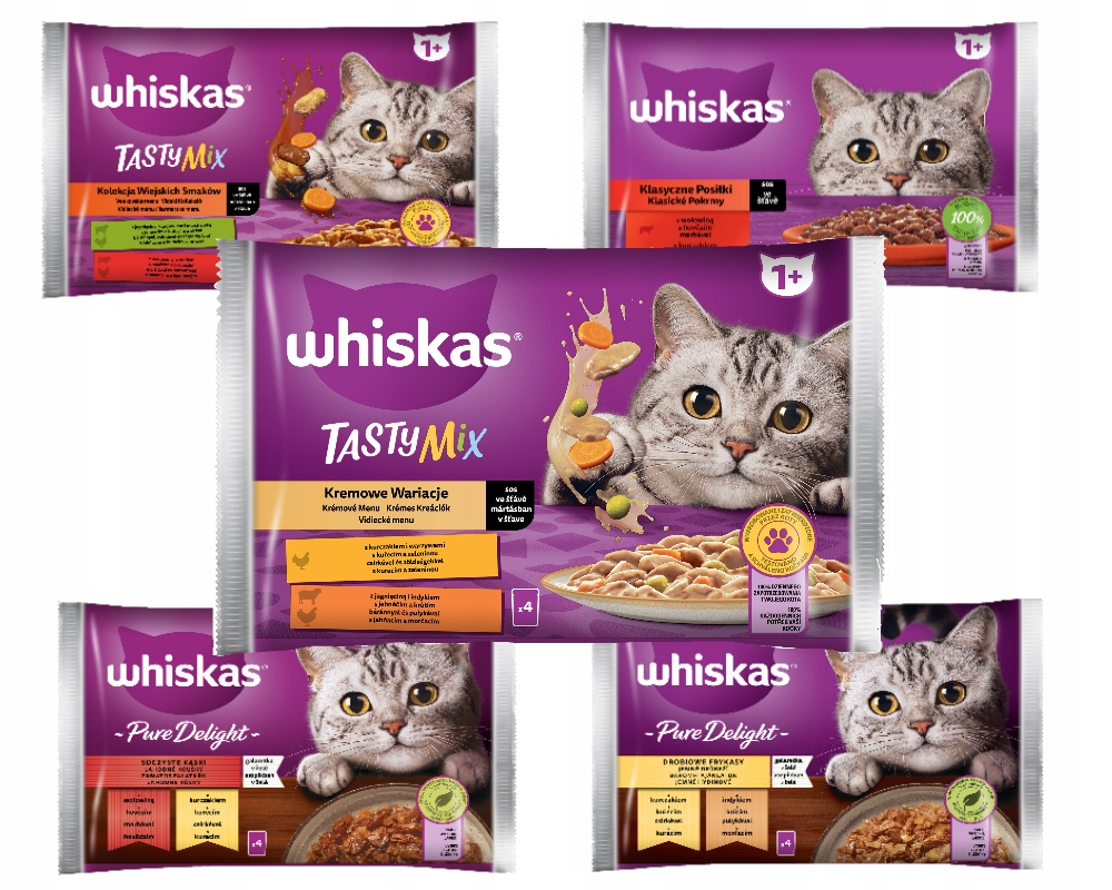 Тестовый набор, состоящий из новых пакетиков Whiskas для взрослых кошек.