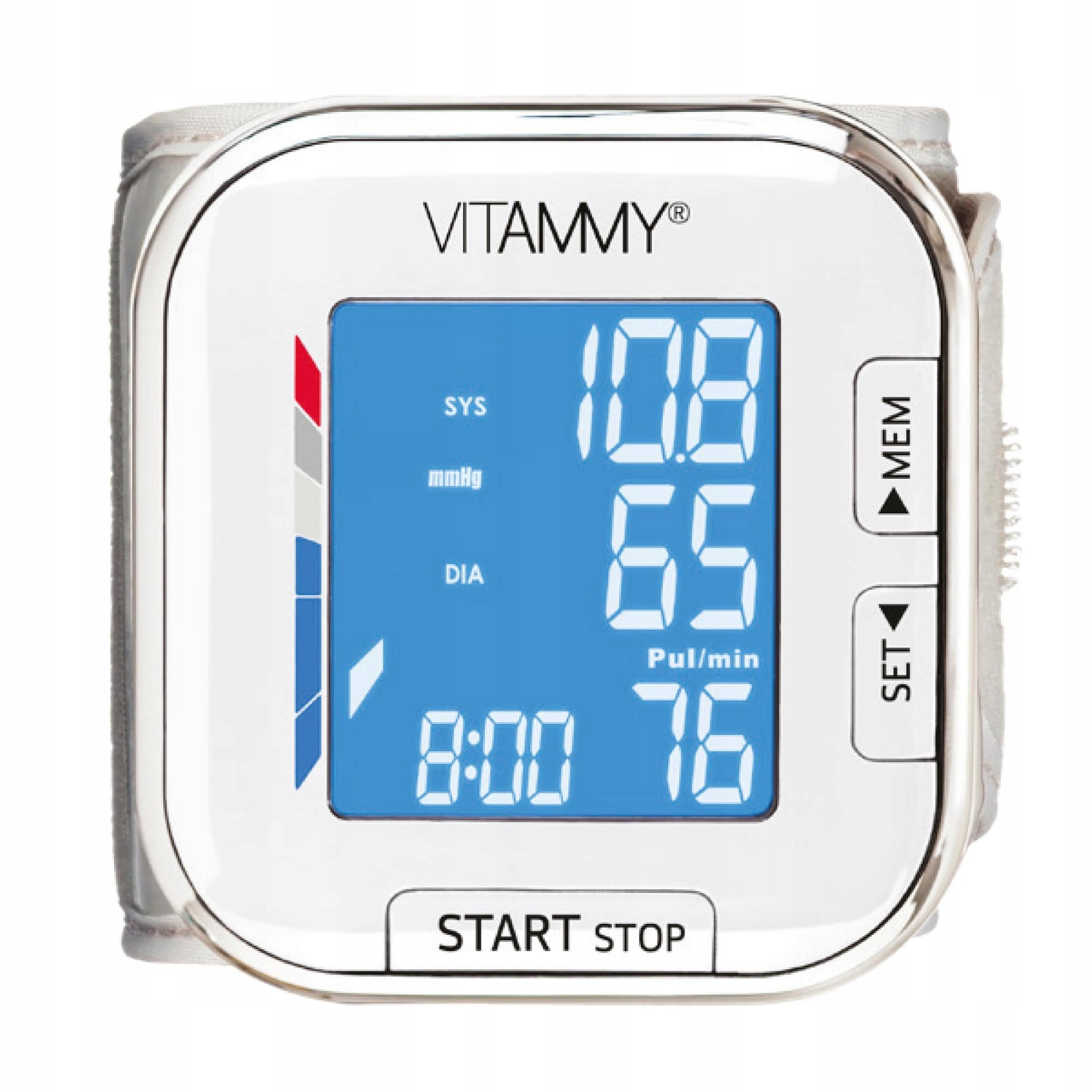 VITAMMY SMART запоминает 60 результатов. Удобный вариант наручного тонометра – идеальное решение для молодых, активных людей, живущих в постоянной спешке. Вы всегда можете иметь под рукой небольшой и удобный тонометр. Регулярный осмотр – это шанс быстро обнаружить отклонения в функционировании системы кровообращения и шанс на ранней стадии осуществить изменения образа жизни, способные предотвратить наиболее распространенные заболевания, связанные с образом жизни.