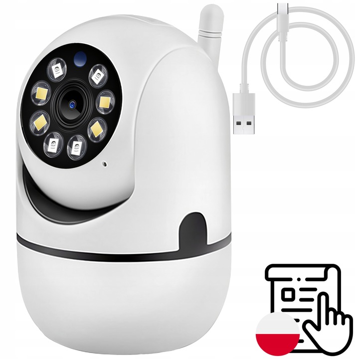 Ротационная камера Wi -Fi - это устройство, которое может действовать как домашний мониторинг, на работе или на участке, но не только, потому что она также работает очень хорошо, как электронная няня. Камера вращается - ее можно управлять по вертикали приложения (120 градусов) и уровня (почти 360 градусов). У него есть оратор, который поможет напугать вора, но он также будет полезен для общения, когда вы хотите успокоить ребенка, например. У него ночной режим, поэтому будет возможен предварительный просмотр ночью. Видео и звуковая запись может быть передана в прямом эфире в приложение и иметь текущий предварительный просмотр ситуации в квартире, но вы также можете использовать карту памяти (не включенную в набор) и записать изображение, чтобы иметь возможность просмотреть его позже.