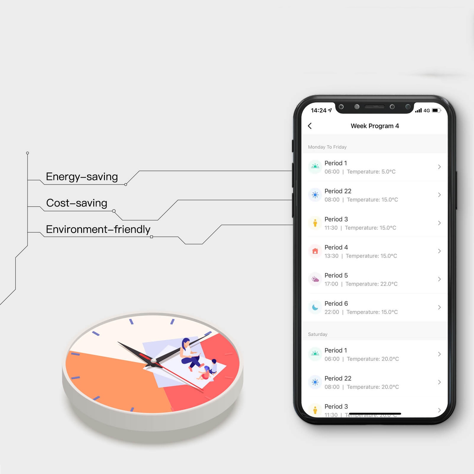 Программируемые шесть периодов 5+1+1 Максимизируйте комфорт и сохранение, переключенная рука или программируемый режим.