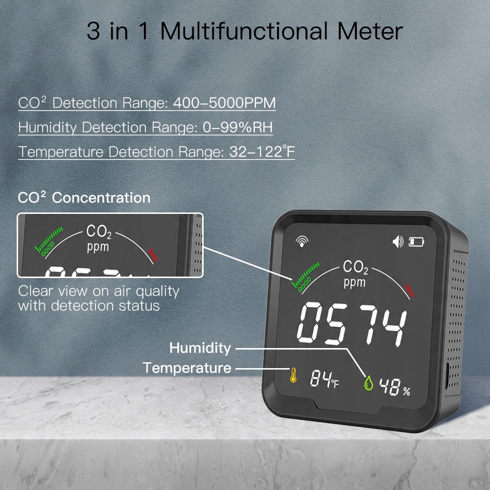 - 【Многофункциональный метр углекислый газ 3 в 1 】 CO2 3 в 1 монитор может обнаружить концентрацию CO2 в режиме реального времени, а также четкое проявление влажности и температуры внутри и снаружи, обеспечивая чрезвычайно удобную и безопасную жизнь. Область обнаружения CO2 составляет от 400 до 5000 ч / млн, обнаружение температуры варьируется от 0 до 50 ℃ и 0-99% относительной влажности для сферы обнаружения влажности, хорошо подходит для сельскохозяйственных посадков, производственных складов, сырья, дома, школы, офиса и других случаев. Звуковая тревога】 Этот детектор CO2 работает с 3 Соо2 уровней в нормальных (400-700 ч/млн), предупреждение ( 700-1500 ppm) и опасное (1500-5000 ppm)) это будет обеспечить безопасность, которая будет обеспечить безопасность. Кроме того, этот воздушный тестер был разработан с калибровочной функцией для более точного мониторинга.