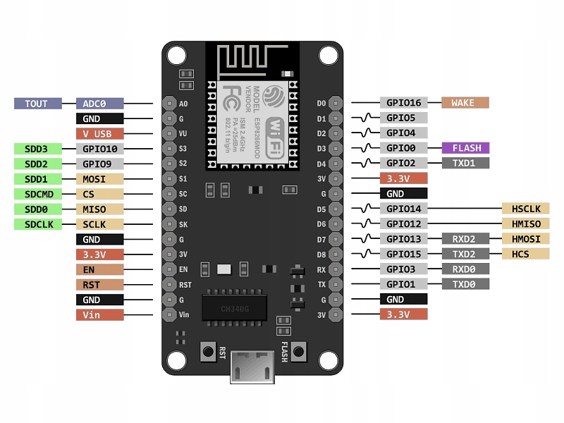 - USB CH340 преобразователь позволяет прямое программирование по (arduino/nodemcu)