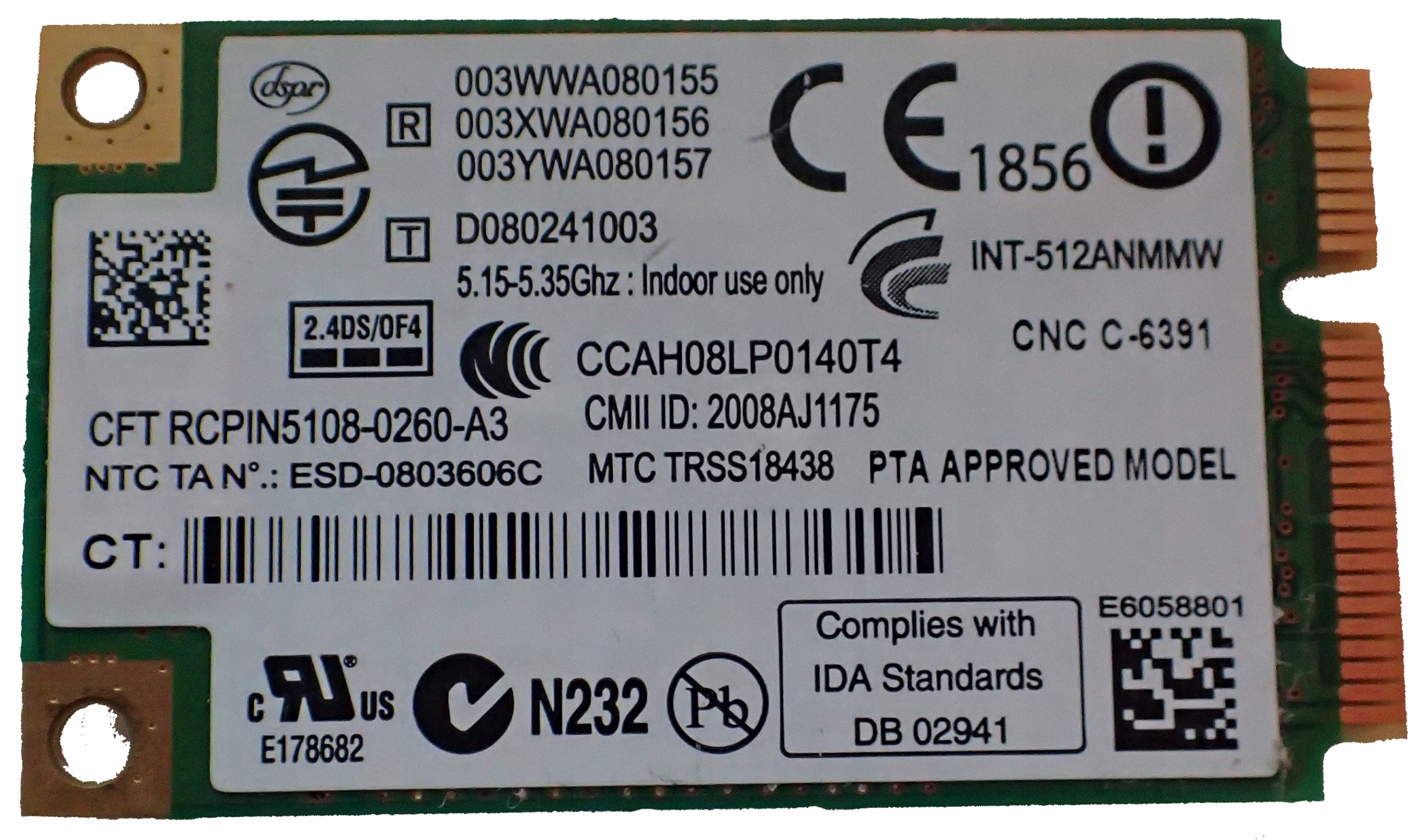 Оплачивая «Wi-Fi карта INTEL 5100 512AN_MMW 5,0 ГГц 300 Мбіт/с» данное изделие из «Kарты miniPCI, miniPCIe» вы можете быть уверены, что после оформления заказа, доставки в Украину, вы получите именно то, что заказывали, в оговоренные сроки и европейского качества.