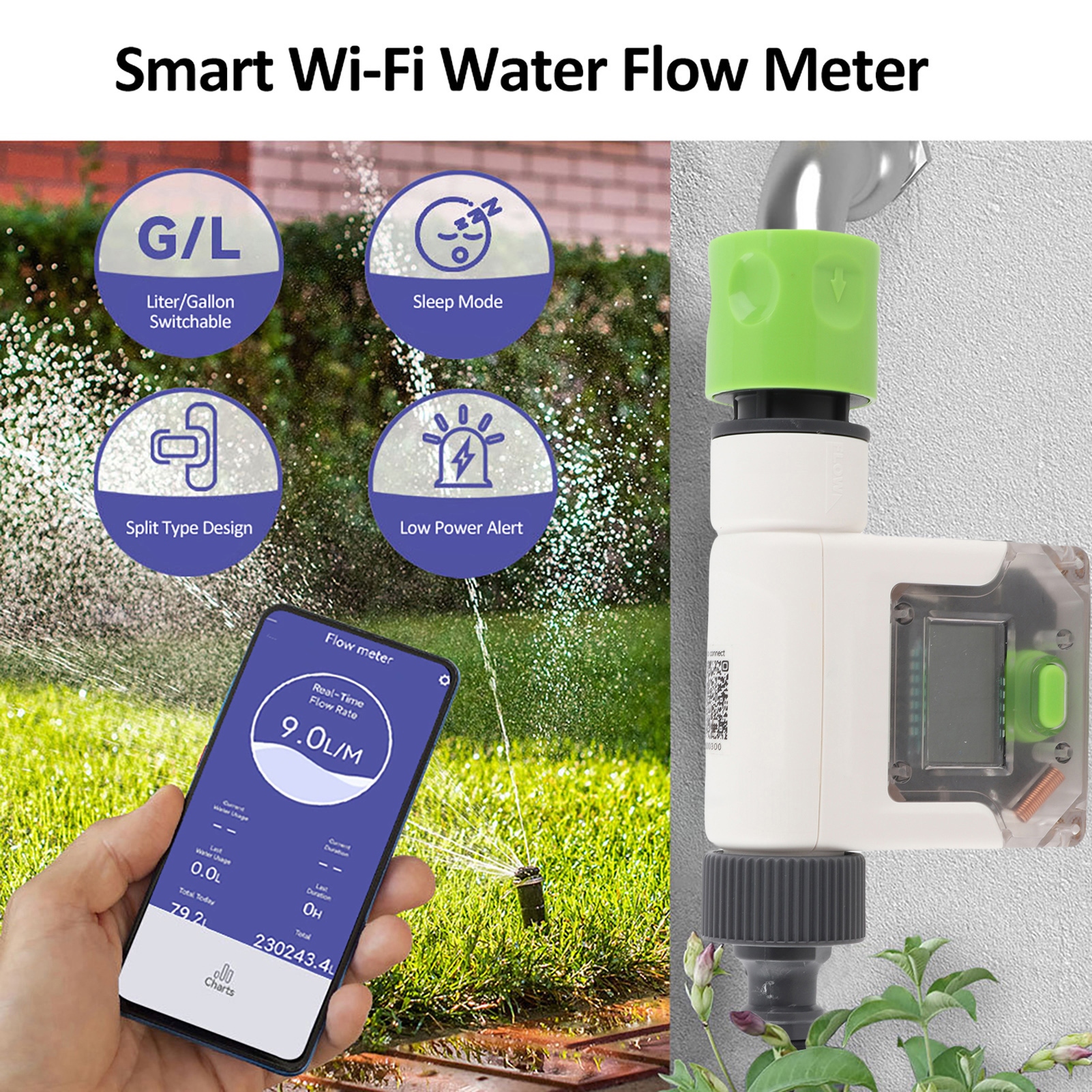 5. Уменьшите счет за воду: сэкономьте деньги и ресурсы благодаря нашему счетчику сада. Мониторинг потребления воды каждый час, каждый день и каждый месяц, тщательно оценивает планы счета и настройки, чтобы поливать максимальную эффективность и экономию.