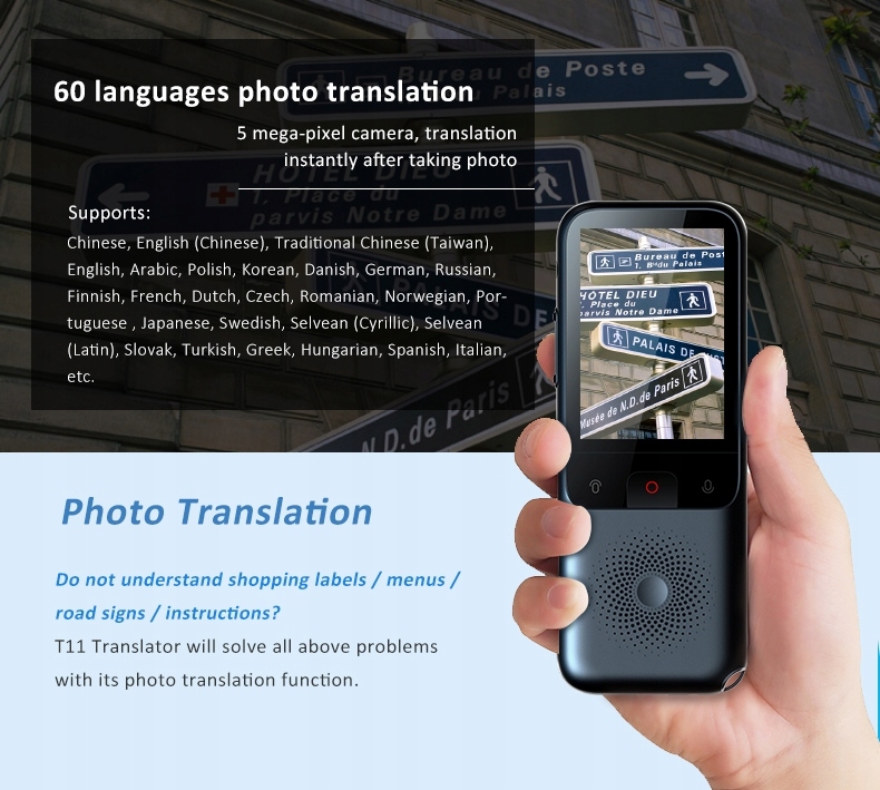 Новый портативный аудио -переводчик T11 138 Языковой интеллектуальный переводчик автономный
