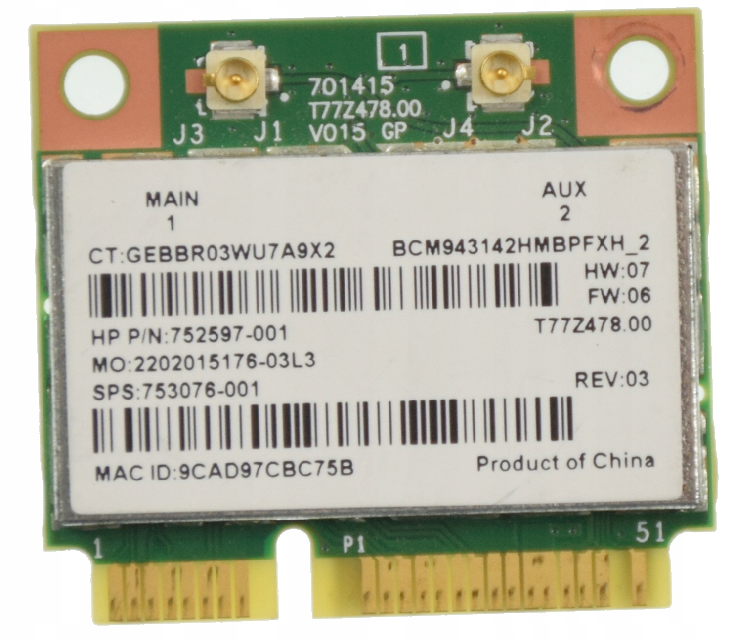 Wi-Fi Wi-Fi Broadcom BCM943142HMBPFXH 753076-001 Сетевой карты HP