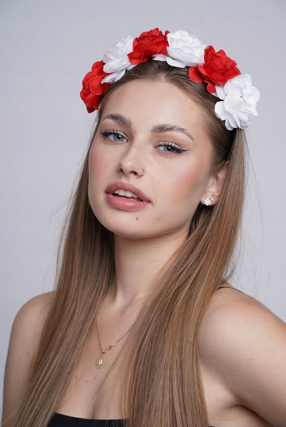 WIANEK KIBICA na mecz opaska na głowę POLSKA kwiaty biało-czerwone RÓŻE