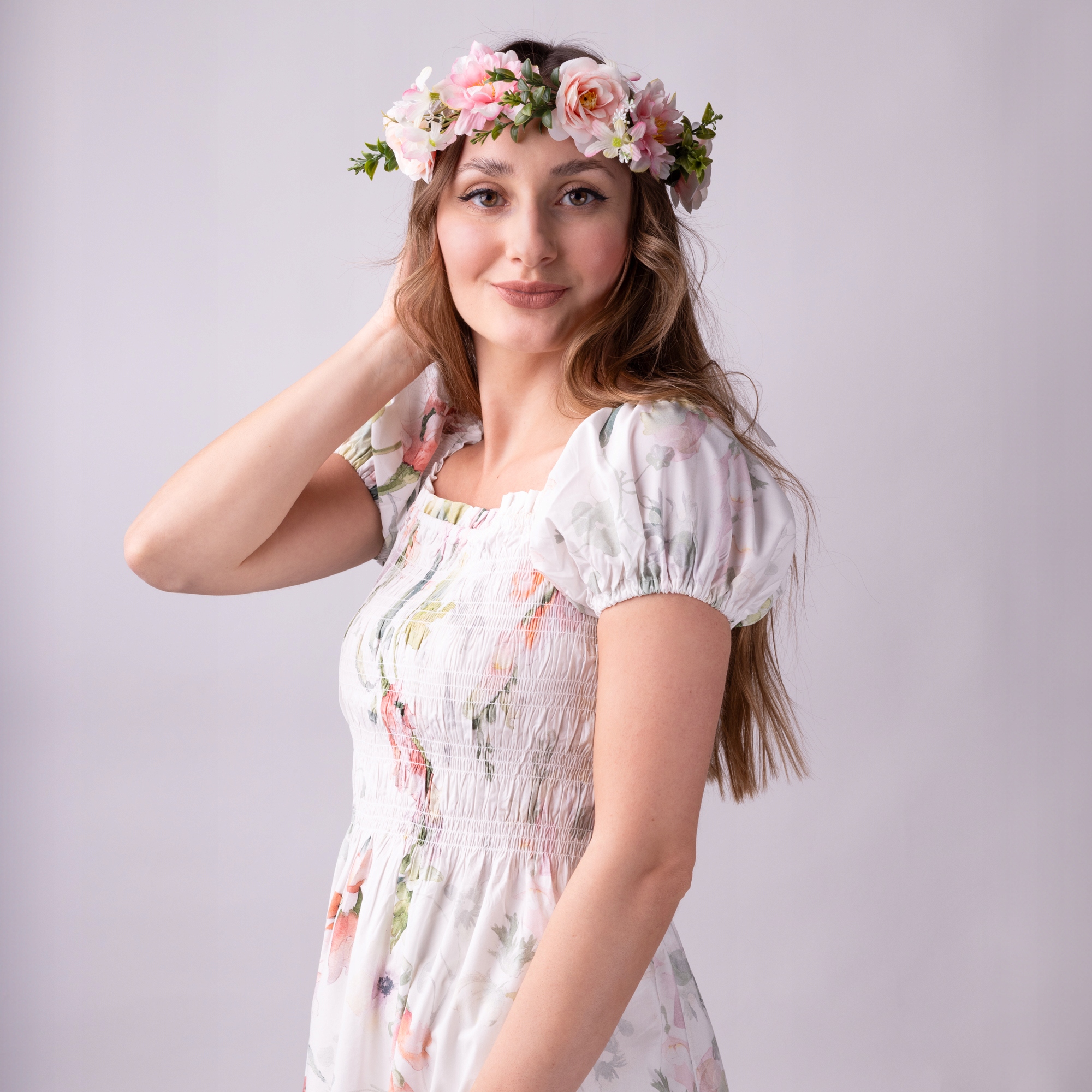 WIANEK na głowę kwiaty ślub panieński uniwersalny BOHO jasny różowy