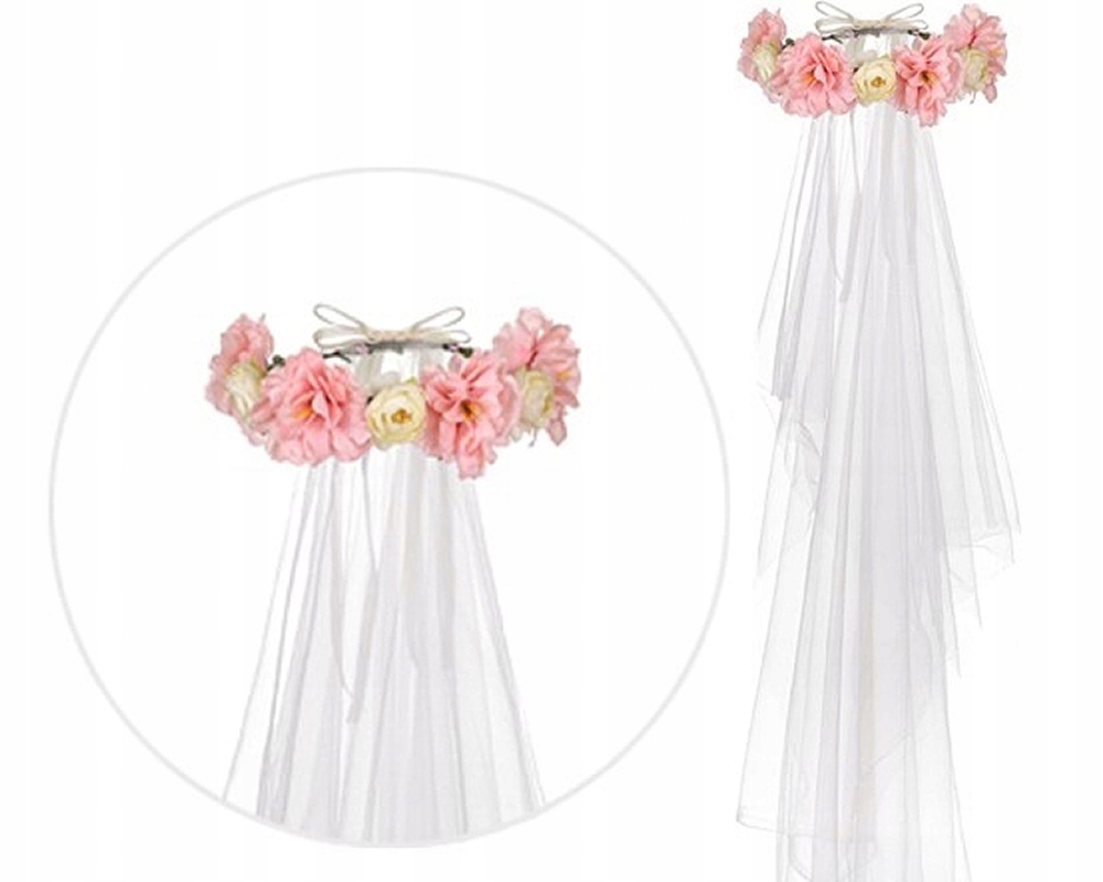 WIANEK NA GŁOWĘ Z WELONEM KWIATY RÓŻ NA WIECZÓR PANIEŃSKI 17 CM bride to be