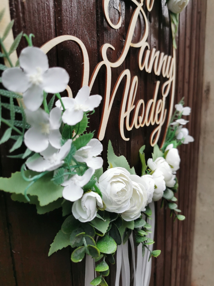 Wianek Wianek добро пожаловать в жених и гости свадьбы 36 см - белые цветы
