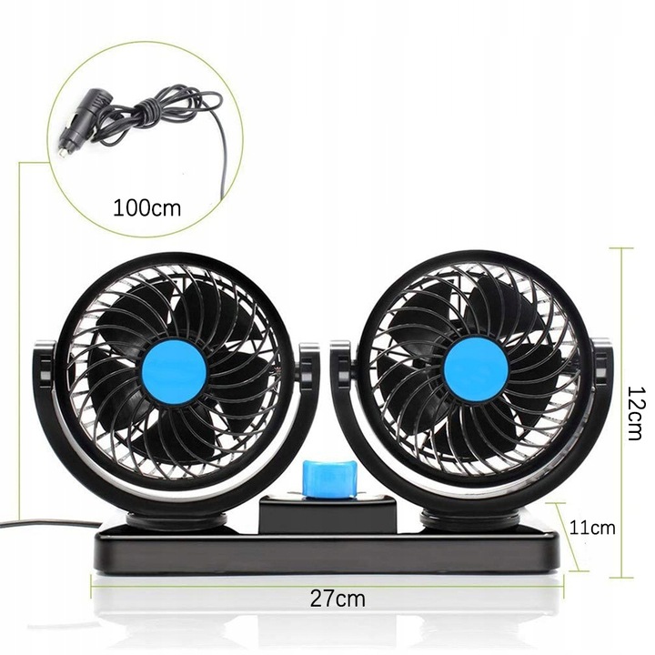 АВТОМОБИЛЬНЫЙ ВЕНТИЛЯТОР ДВОЙНОЙ МОЩНЫЙ 12 В 360 ГРАДУСОВ ДЛЯ АВТОМОБИЛЯ