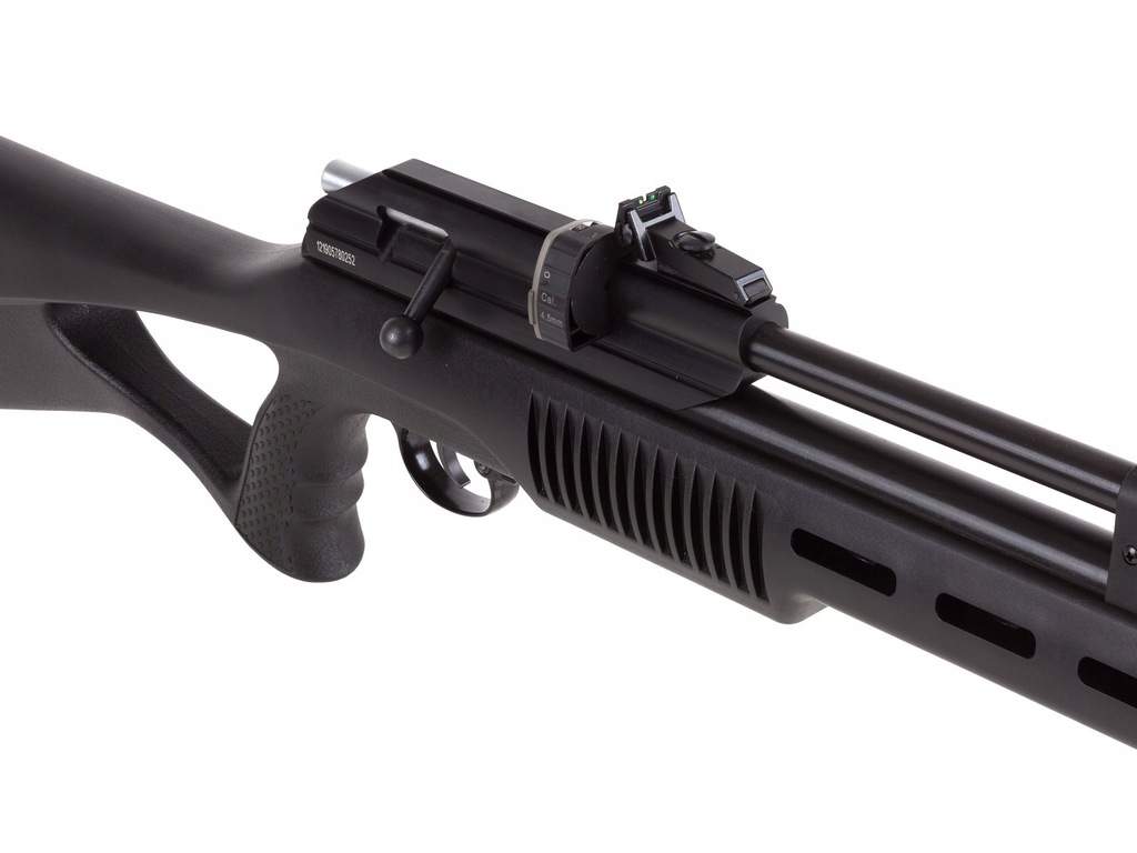 регулируемый спусковой крючок, резиновый затыльник приклада и эргономичную рукоятку с отверстием для большого пальца.