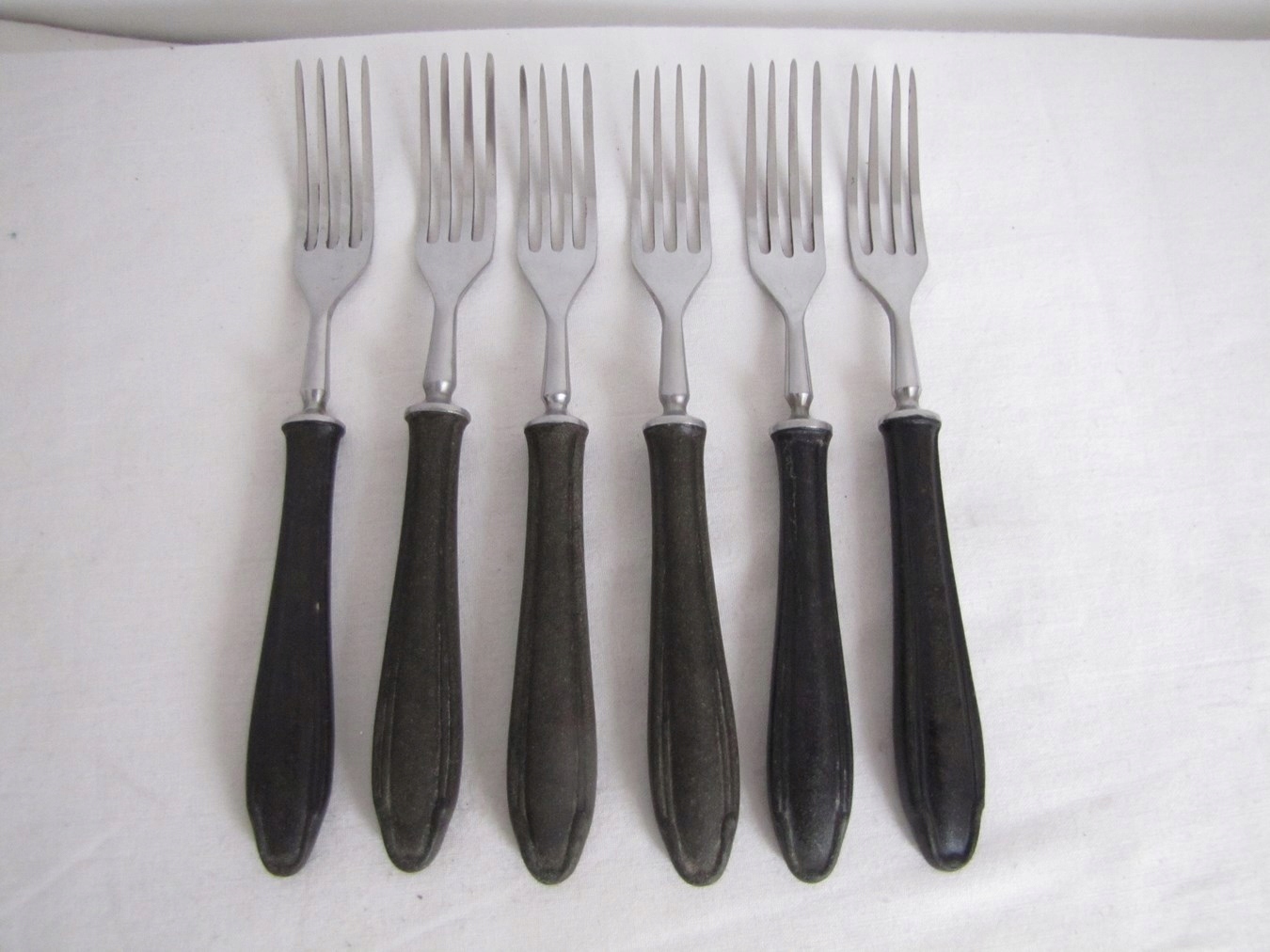 WIDELCE CZARNY BAKELIT ZESTAW SZTUĆCÓW PRL 6 SZT