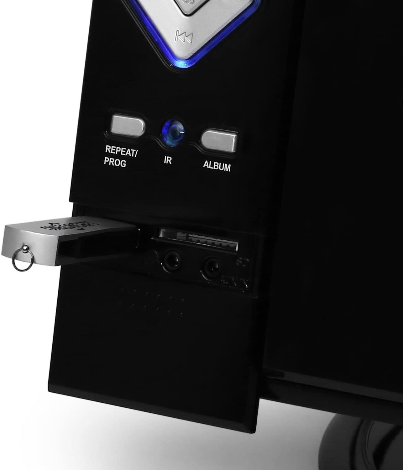 Для соответствия современным требованиям устройство оснащено тремя входами, позволяющими подключать внешние аудиоаксессуары. Входы USB и SD, удобно расположенные сверху, позволяют воспроизводить файлы MP3 с таких носителей, как MP3-плееры, флэш-накопители и карты памяти. Ноутбуки, смартфоны и кассетные плееры без проблем обмениваются данными через вход Jack.