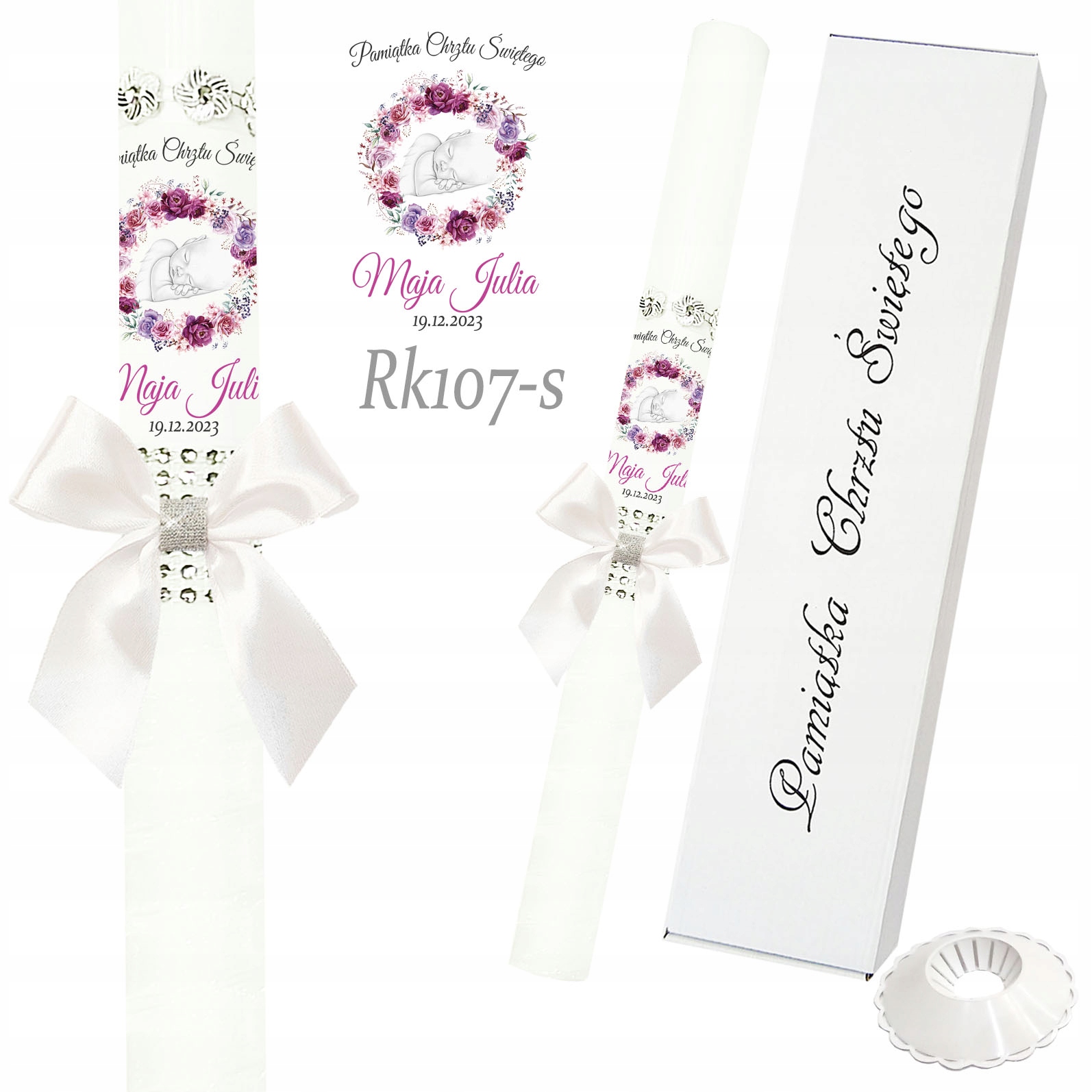 ŚWIECA DO CHRZTU CHRZEST GROMNICA z IMIENIEM