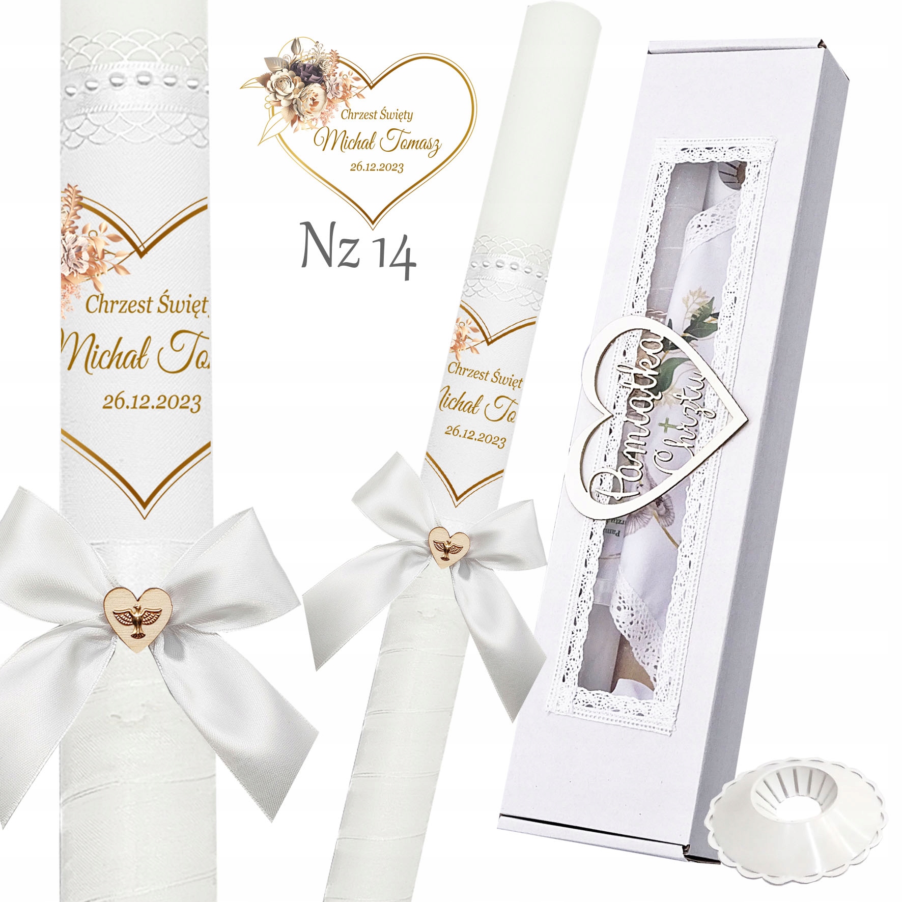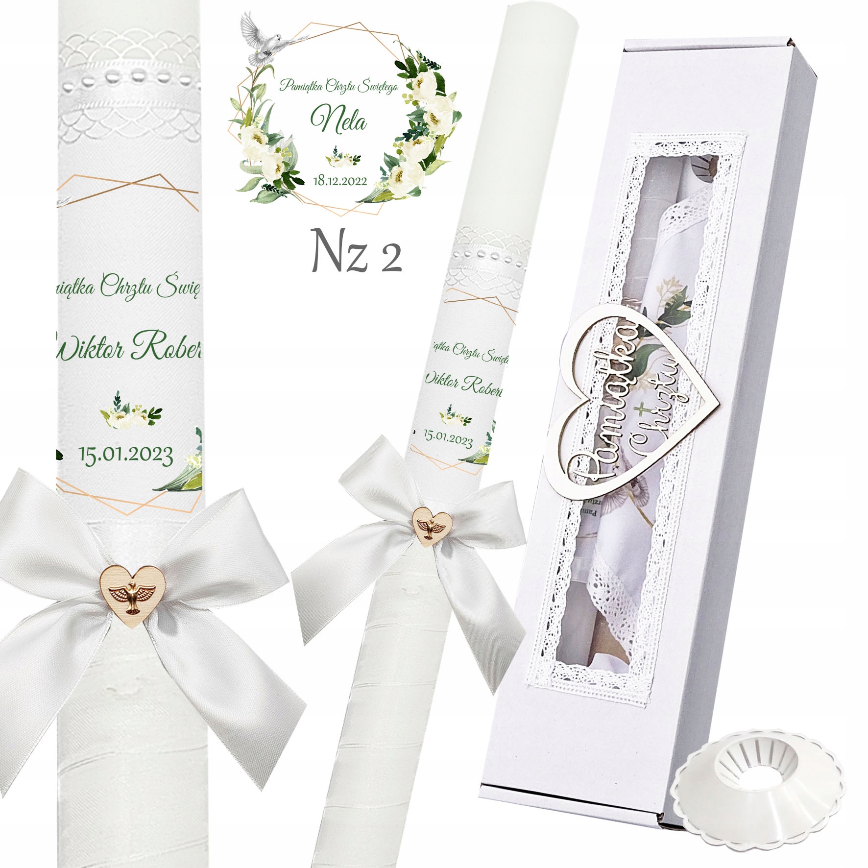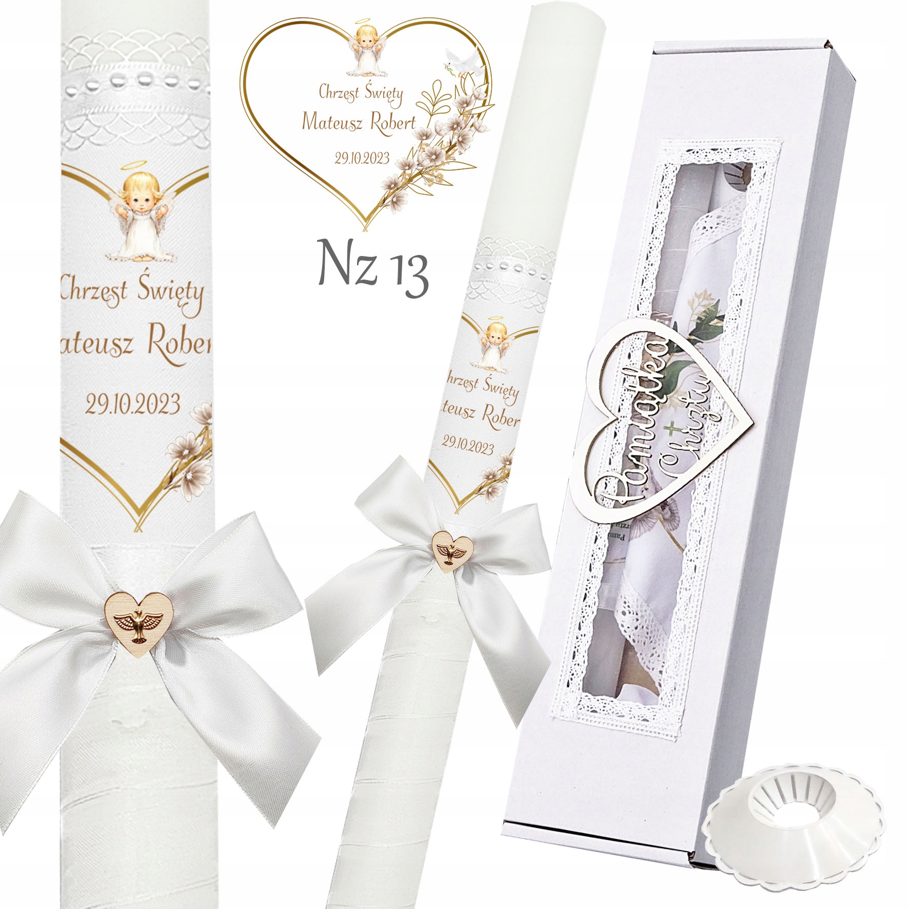 ŚWIECA DO CHRZTU CHRZEST z IMIENIEM Pudełko białe okienko