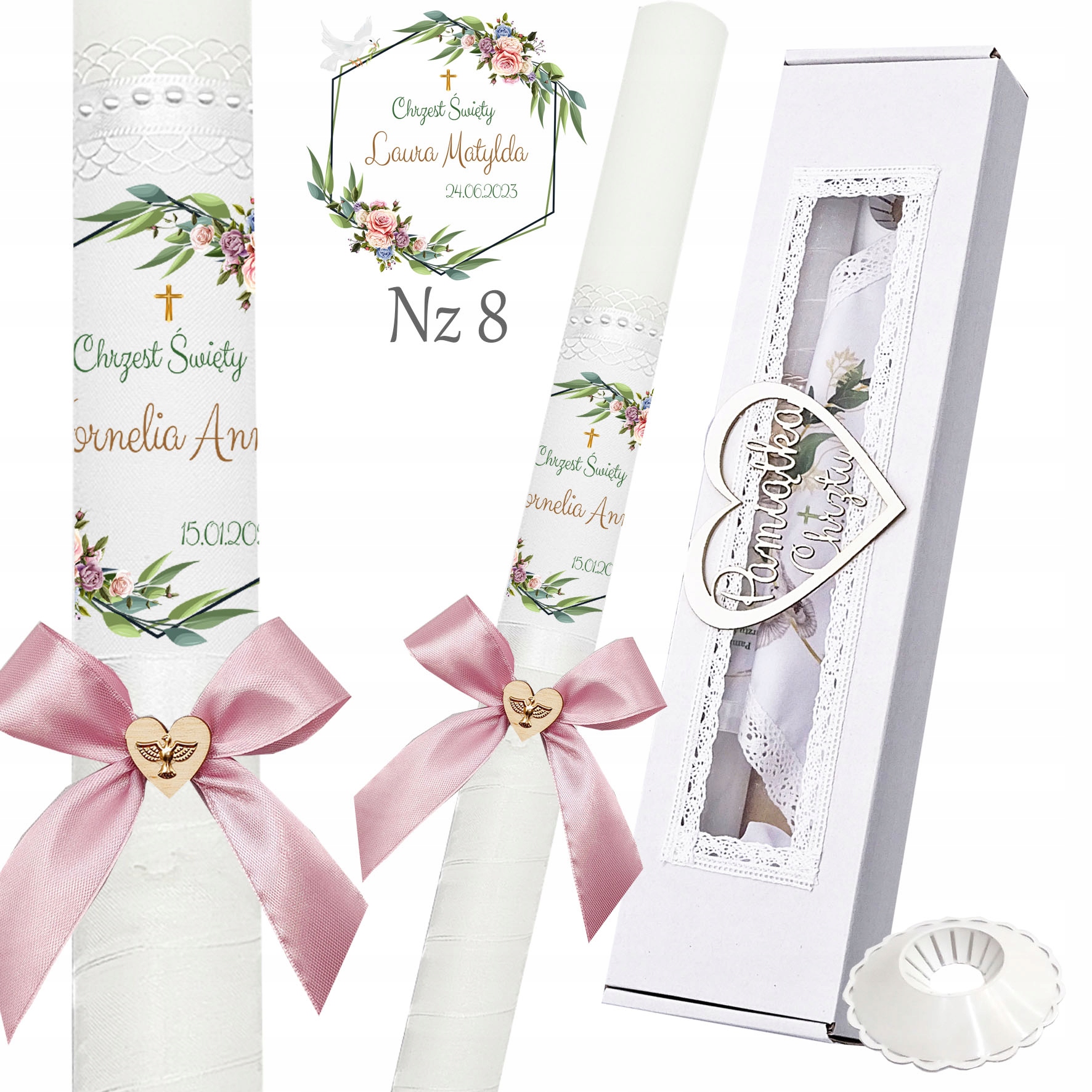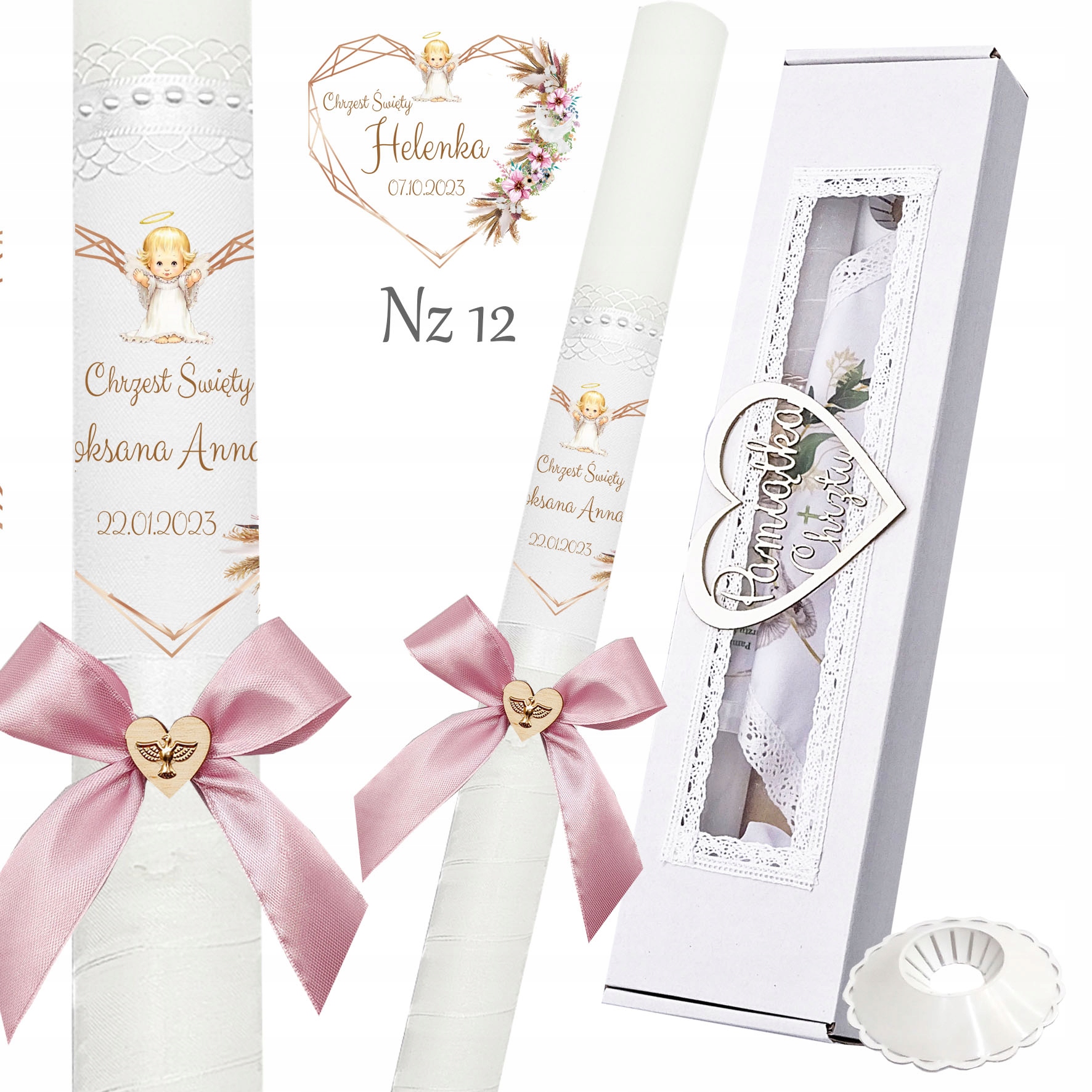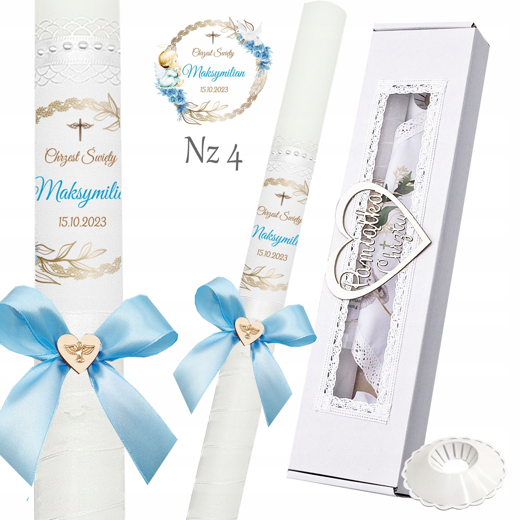 ŚWIECA DO CHRZTU CHRZEST z IMIENIEM Pudełko białe okienko