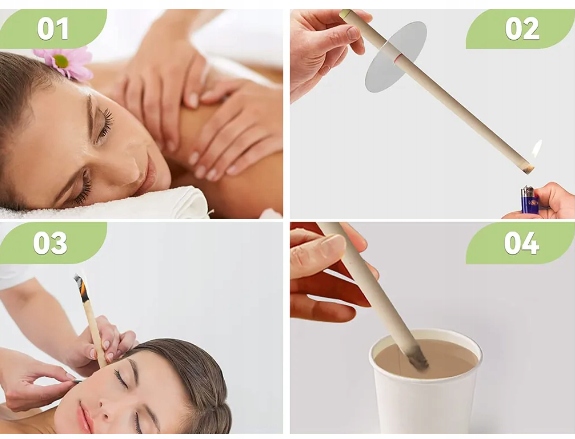 <р>1. Ложитесь на подушку. <р>2. Комбинированные ушные свечи с фильтром. <р>3. Зажгите широкий кончик и осторожно вставьте меньший кончик в ухо. <р>4. Держите свечу в правильном положении. <р>5. Когда пламя достигнет кольца прерывателя, выньте свечи и сотрите их.Ушные свечи для ароматерапии