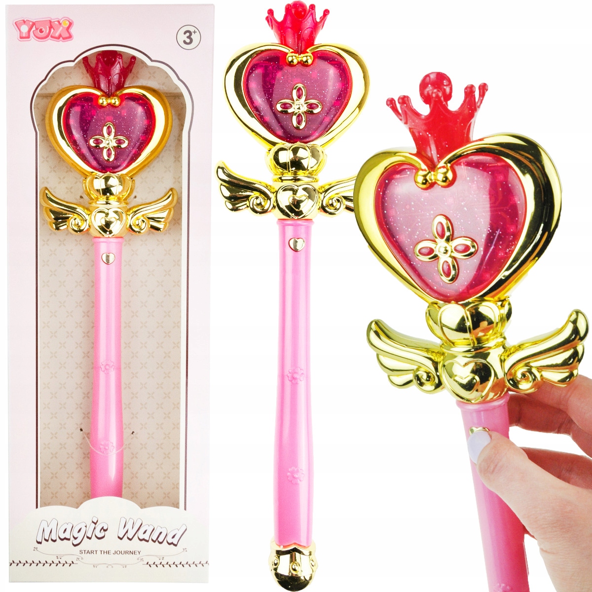 ŚWIECĄCA MAGICZNA RÓŻDŻKA RÓŻOWA DLA KSIĘŻNICZKI WRÓŻKI ŚWIECI GRA BAJKOWA