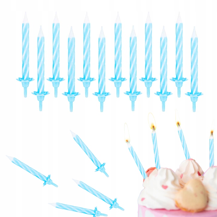 ŚWIECZKI URODZINOWE NIEBIESKIE NA IMPREZĘ URODZINOWĄ DEKORACJA 24 SZT