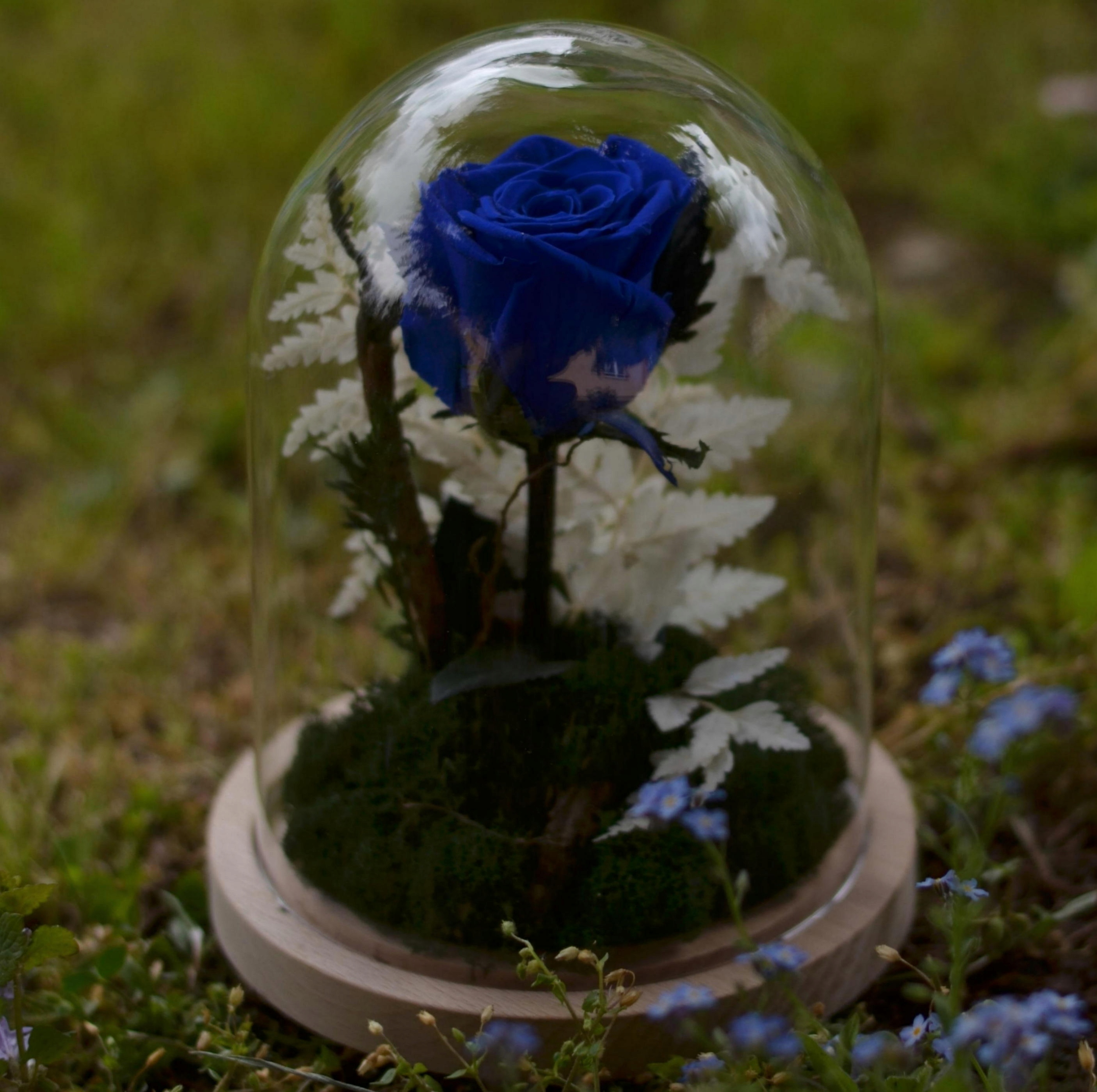 Настоящая вечная роза в стеклянном куполе на деревянной подставке со стабилизированным мхом и папоротником. Эта композиция обеспечивает естественную красоту примерно на 2 года. Чтобы наслаждаться своим внешним видом, он не требует никакого ухода. Обратите внимание на высокое качество розы. Композиции создаем сами.