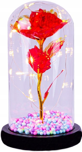 WIECZNA RÓŻA W SZKLE ŚWIATEŁKA LED WALENTYNKI HQ
