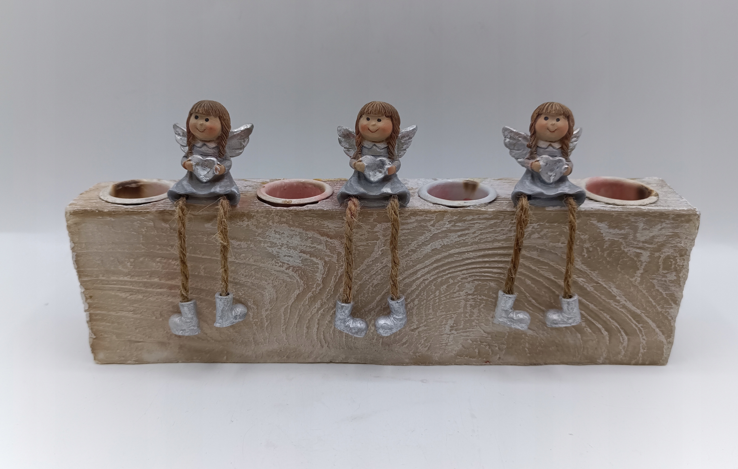 Świecznik na 4 świece Trzy szczęśliwe Aniołki zwisające nóżki świetny 22cm