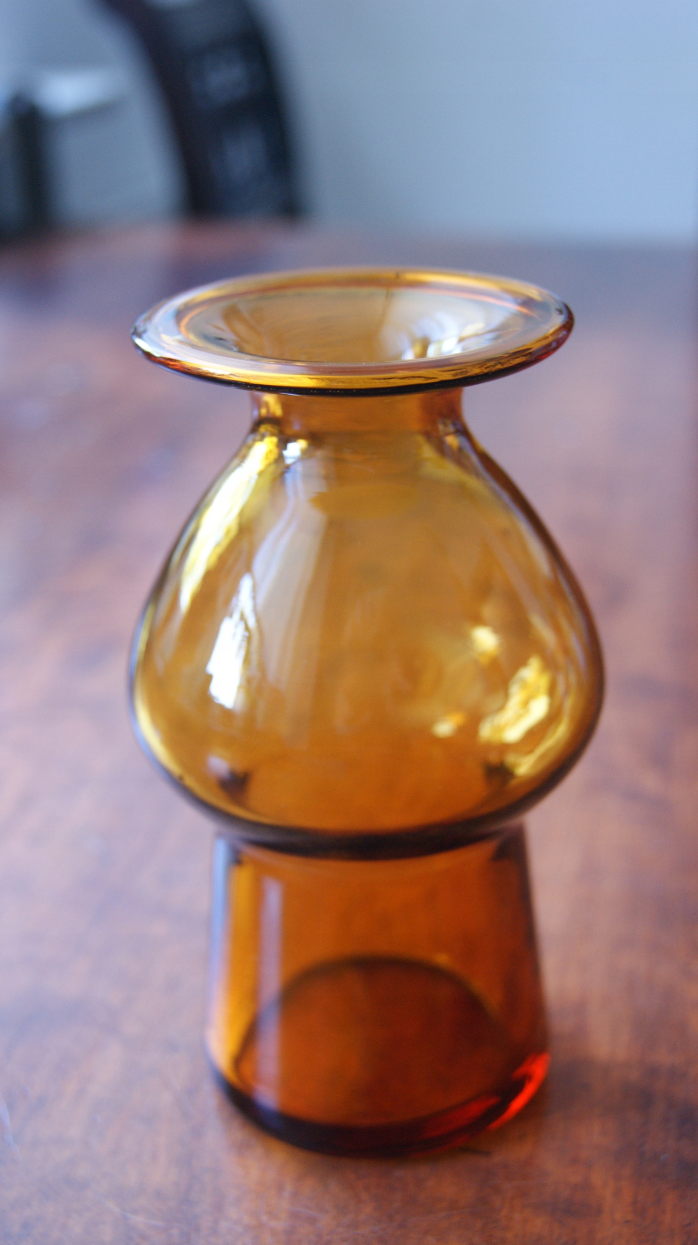 Очаровательный стеклянный подсвечник от Huta Laura 1970-х годов, цвет тонированного стекла медовый, очень хорошее состояние, высота 13,5 см, диаметр верха 6,5 см