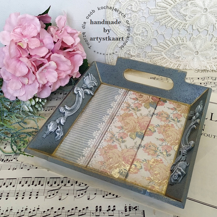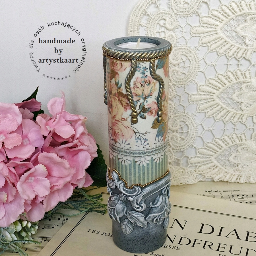 ŚWIECZNIK TACKA komplet drewno decoupage