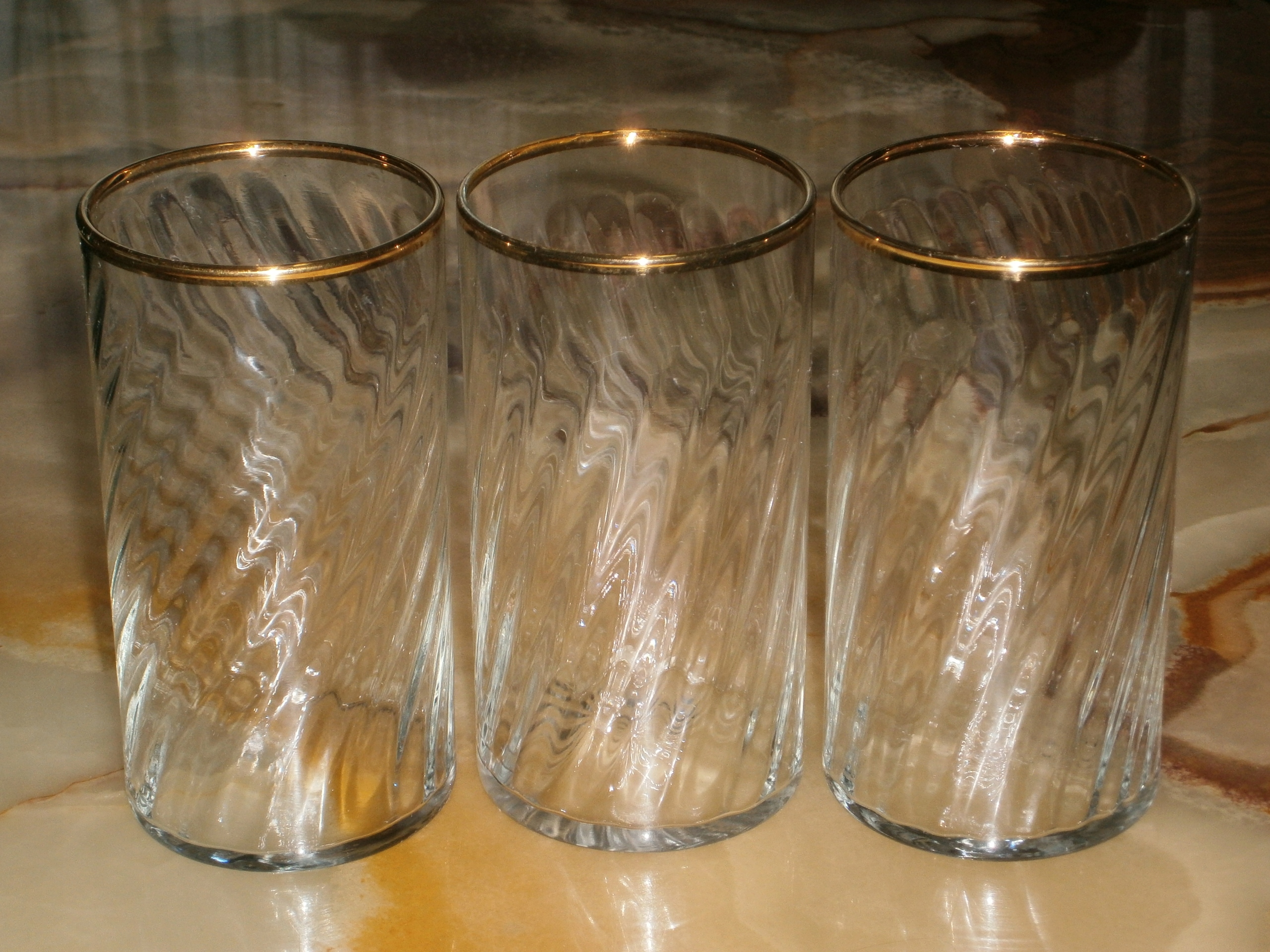 WIEKOWE KRĘCONE SZKLANKI HAND MADE ZŁOTY PAS 3 SZT